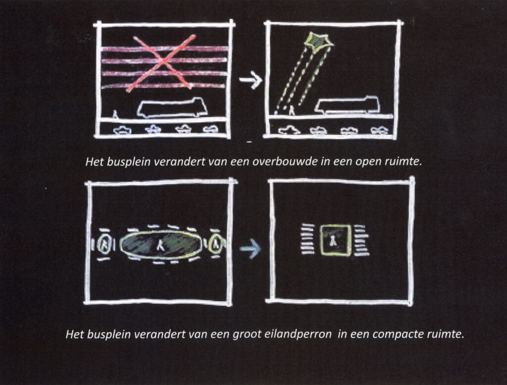 Door een andere opzet van het busstation kan er nu een stationshal komen die direct en ruimtelijk aan de drie verschillende niveaus ligt, de Stationshal als toegangsplein van Noord.