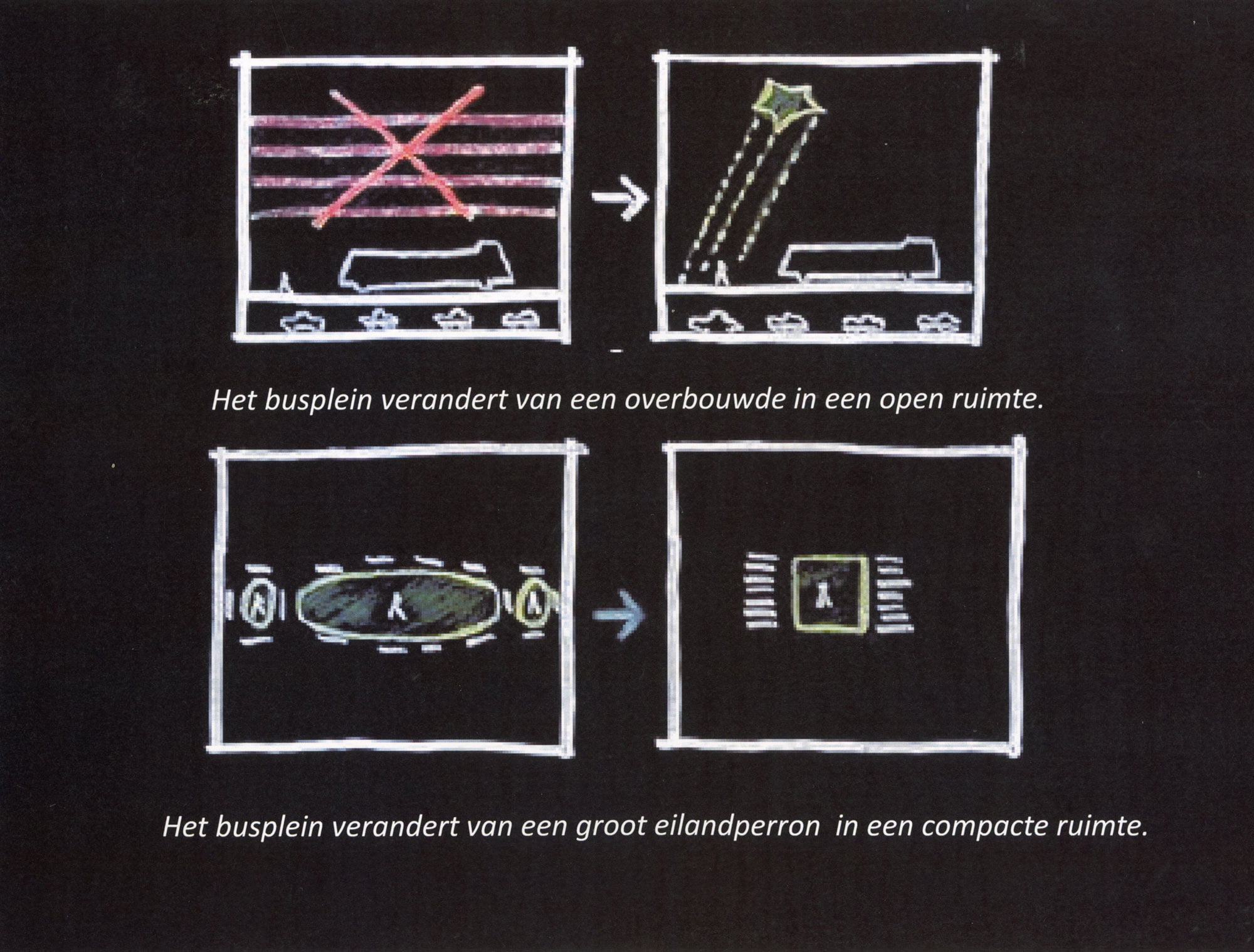Door een andere opzet van het busstation kan er nu een stationshal komen die direct en ruimtelijk aan de drie verschillende niveaus ligt, de Stationshal als toegangsplein van Noord.